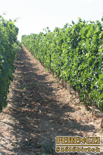 A hegy-völgy irányban elhelyezkedő szőlősorainkat 1, 8X0, 8 m tenyészterületre ültettük. Az egész ültetvény alacsony kordon művelésmódra lett kialakítva, rövid csapos metszést alkalmazunk.