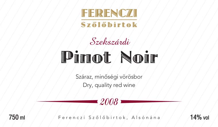 Az alsónánai birtokunk keleti oldalára telepített Pinot Noir szőlőnk a 2008. évi szüretben is elegáns, gyümölcsös bort adott, amely rendelkezik a tipikusan szekszárdi buja, mediterrán jegyekkel.