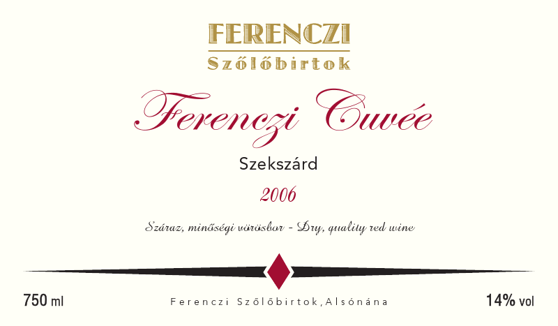 Merlot, Cabernet Franc, és Zweigelt házasítás. Intenzív mély rubinvörös szín. Erőteljes érett vörös gyümölcs illat, krémes, meleg vaníliás háttérrel. Jól strukturált, nagy testű bor, markáns érett gyümölcsízekkel, bársonyosan édes tanninokkal, hosszantartó étcsokoládés lecsengéssel.
