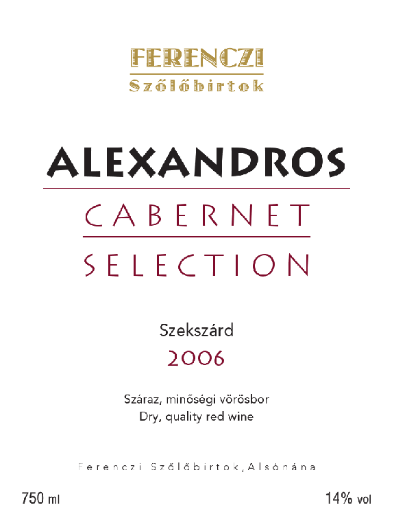 Cabernet Franc és Cabernet Sauvignon 50-50 %-os házasítás.