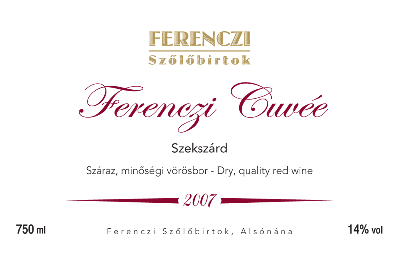 A kiváló 2007-es évjárat szépen beérett Merlot, Cabernet Franc és Cabernet Sauvignon szőlőiből kétévnyi gondos munkával, türelemmel és főleg Szekszárd iránti olthatatlan szeretettel készítettünk egy tipikus Ferenczi birtokbort.